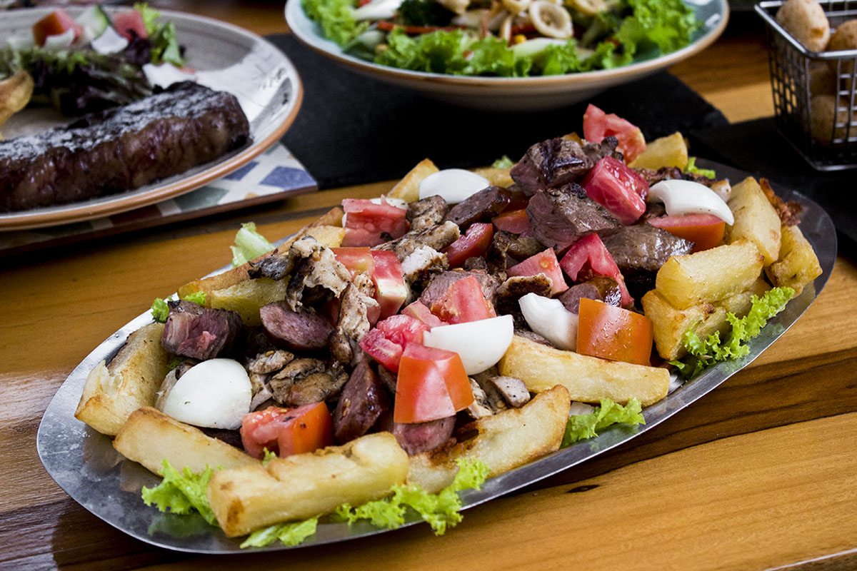 Nuestro chef la recomienda, disfruta de un exquisito churrasco, pollo al limón, chorizos ahumados, ensalda, papa frita y yuca.